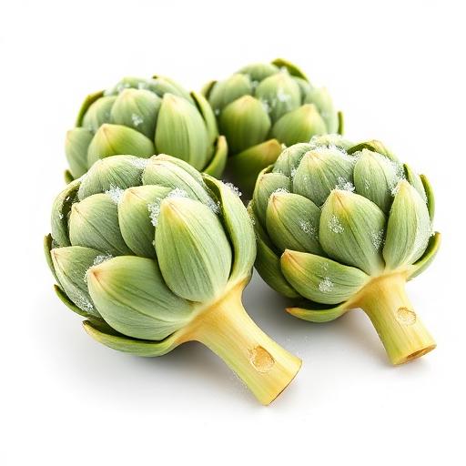 Fresh frozen artichoke hearts, carefully peeled and ready for cooking.