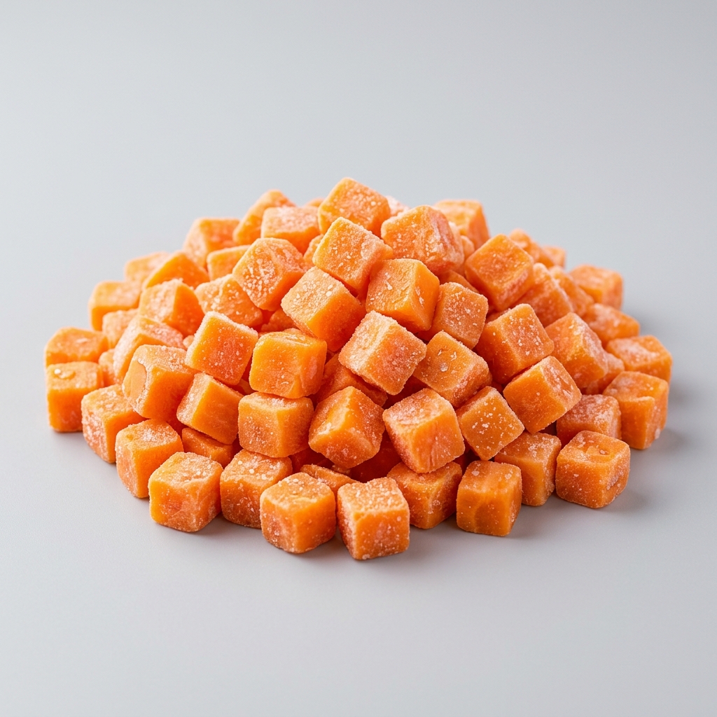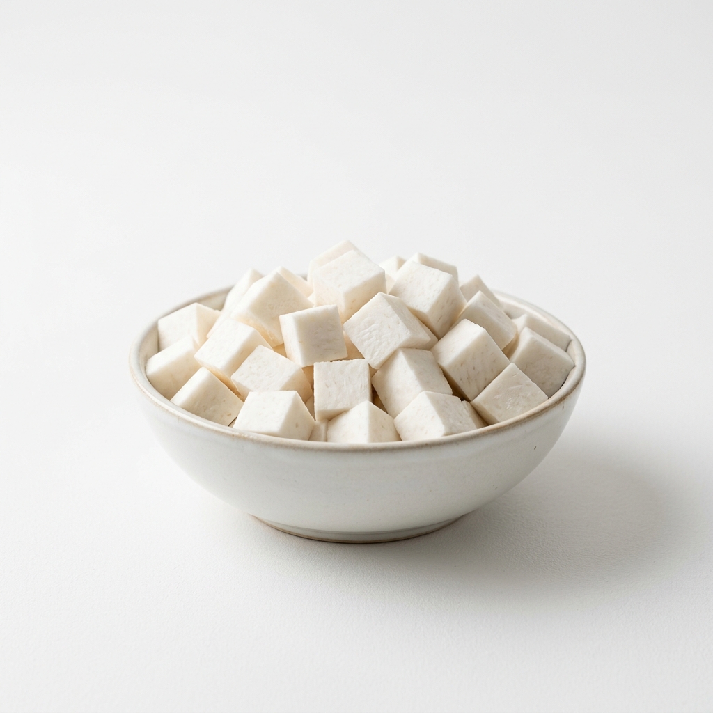 Fresh frozen taro cubes, ready for cooking with no peeling effort required.