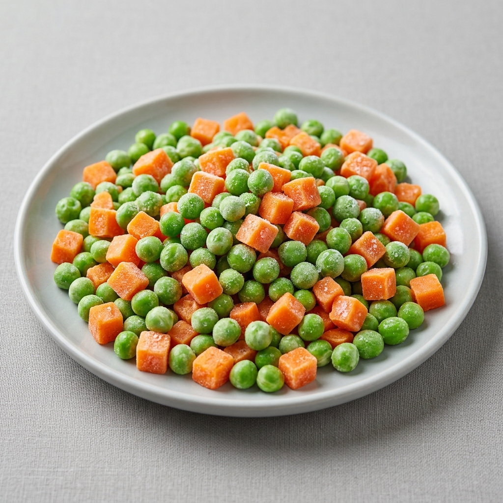 Balanced mix of green peas and fresh carrot cubes, perfect for daily meals.